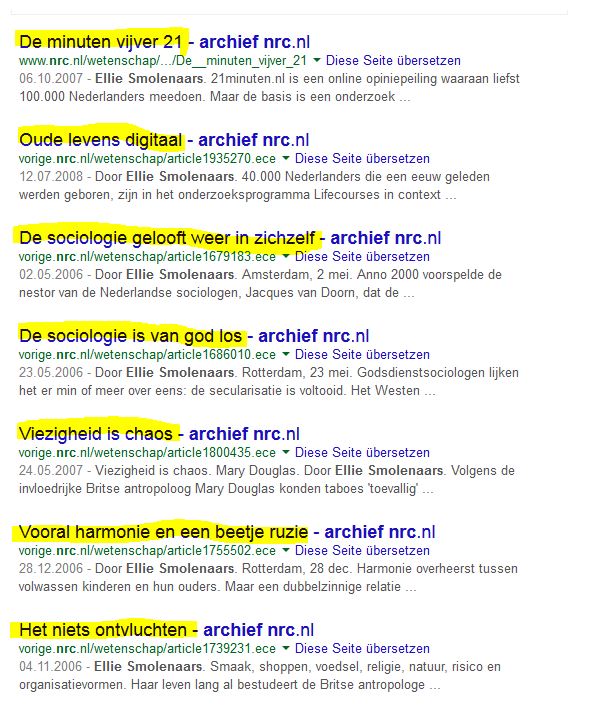 Vaak was ik verrast over wat er boven mijn artikelen stond. Achteraf gezien vind ik ‘mijn’ titels in dit NRC-archieflijstje er mooi bij staan. Weg van de hitte van het schrijfproces en de deadlines kan ik die eindredacteuren bij NRC Handelsblad alleen maar complimenteren. En hopen dat schrijvers voor Sociologie Magazine de koppen van onze eindredactie ook als intelligent en aantrekkelijk zullen ervaren. En vooral dat de lezers ze zullen willen lezen.